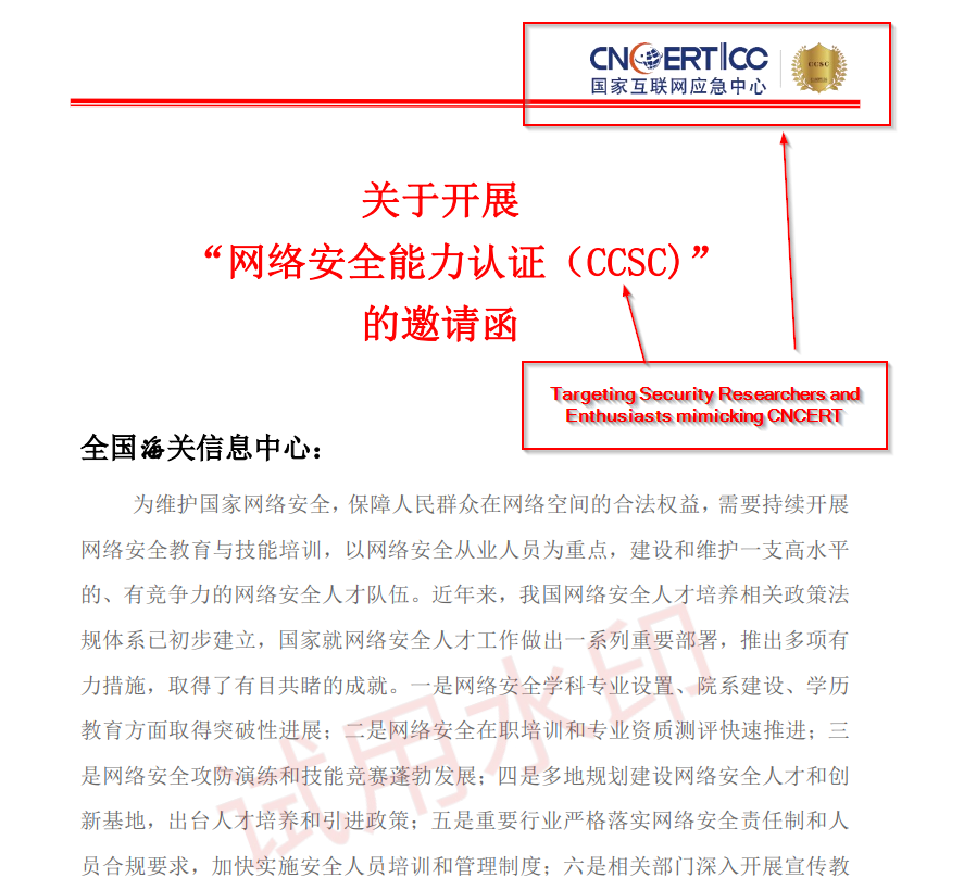 We also found these interesting lures from campaigns targeting Pakistani Military Academy & Chinese Cybersecurity Researchers mimicking CNCERT, well last but not the least, we also found that the threat actor also targets medical institutes based out of China.