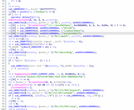 a1[39] | “stop” kill-switch | Reads %APPDATA%\A686911000006E\FILTER\stop into v18 | Non-zero byte ⇒ stop/disable behavior |