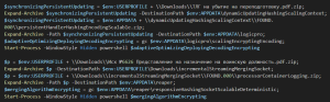 and subsequently uses it to extract the second archive file from the folder ‘FOUND.000’. This multi-stage extraction drops the payloads into either ‘$env:APPDATA\logicpro’ or ‘$env:APPDATA\reaper’ directories, reads the content of a text file and executes it silently via hidden PowerShell process.