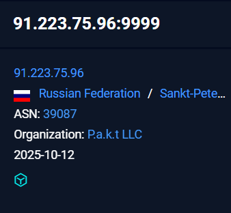 The later infrastructure where the implant was giving a callback and exfiltrating all the information stolen from the victim was hosted under the ASN 39087 under the organization P.a.k.t LLC .