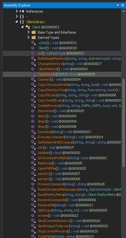 Now upon analyzing the binary, we found that there are multiple interesting set of functionalities present inside the .NET implant known as CAPI .